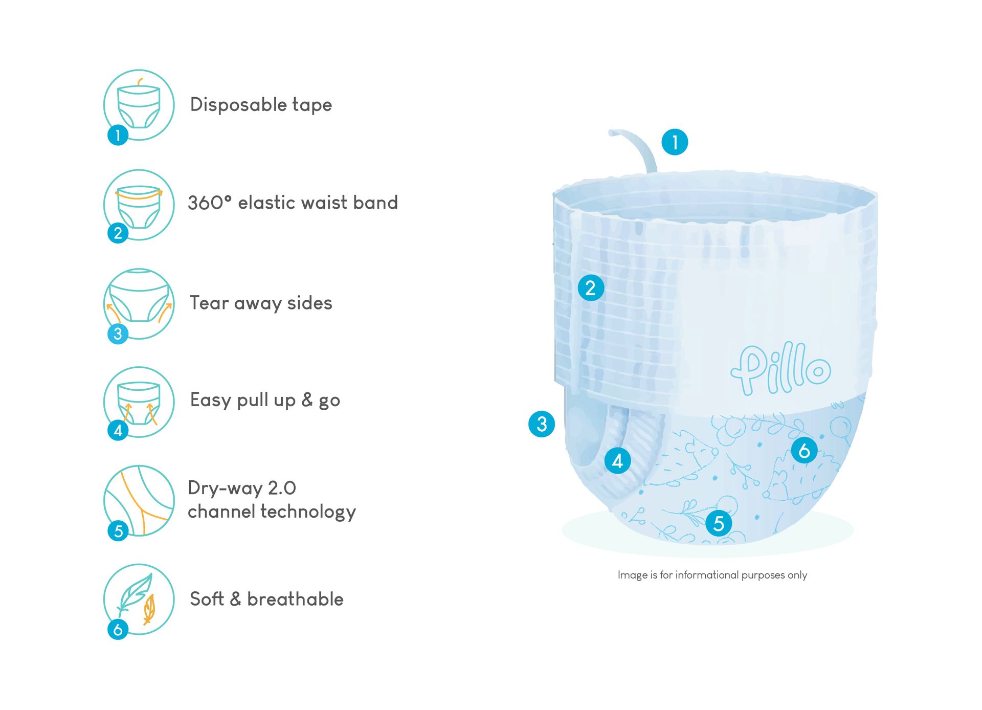 Ces couches sont conçues pour minimiser l'impact environnemental. Pillo s'engage dans une gestion durable des ressources et réduit son empreinte carbone de 25 % depuis 2010 grâce à l'utilisation d'électricité verte certifiée par Naturemade star.